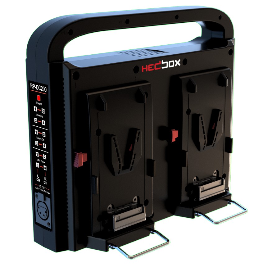 O RP-DC200V é um carregador digital de quatro baterias que carrega convenientemente baterias V-Mount profissionais simultaneamente. O uso das mais recentes tecnologias de carregamento de bateria, com ativação de carregamento de zero volt, permite que você carregue as baterias ao mesmo tempo, economizando tempo e dinheiro.