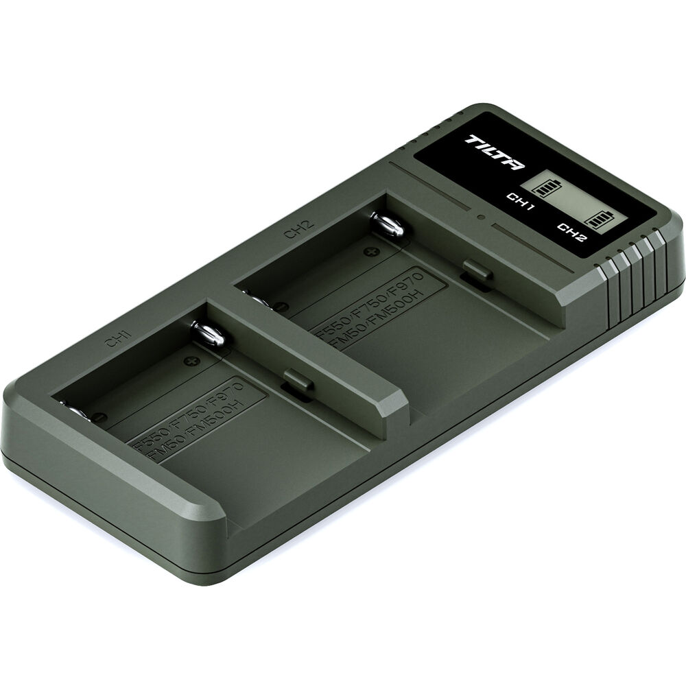 O carregador de baterias Tilta de 2 compartimentos para baterias NP-F/L permite recarregar simultaneamente duas baterias da série NP-F/L, ideal para longas jornadas de filmagem em sets de filmagem ou em locações externas. O carregador possui portas micro-USB e USB-C para carregamento rápido e flexível a partir de diversas fontes de energia. A porta USB-C, em particular, suporta protocolos de carregamento rápido de 9V e 1A. Um visor LCD integrado exibe o status de carregamento em tempo real, e a tecnologia Smart Power Cutoff evita sobrecarga, interrompendo o carregamento automaticamente quando as baterias atingem 100%.