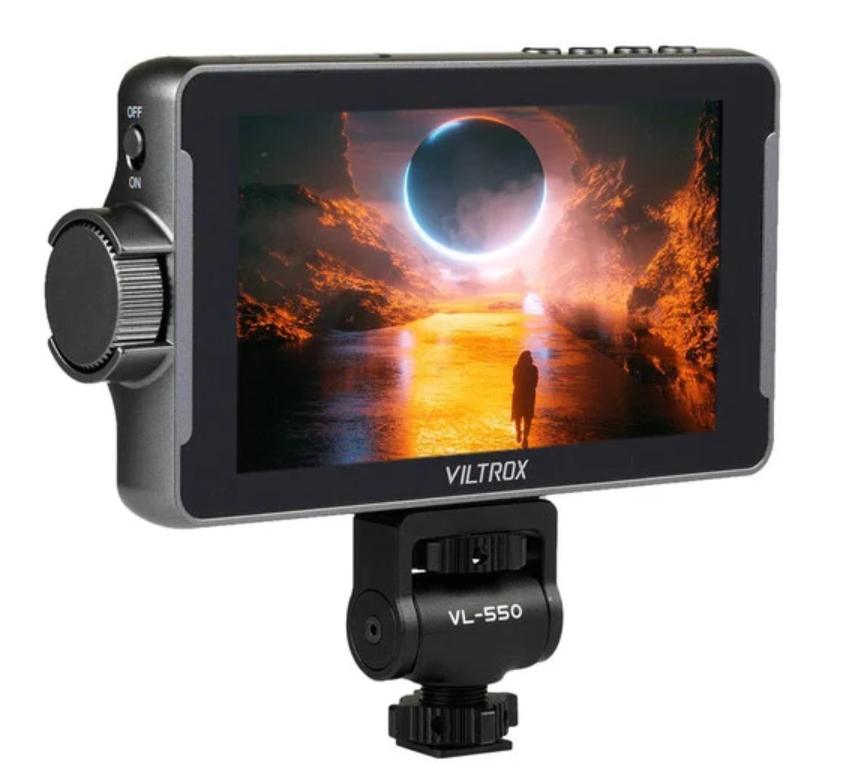 O leve monitor HD DC-550 de 5,5" da Viltrox permite visualizar a imagem da sua câmera em uma tela de 5,5" brilhante e nítida. O DC-550 suporta entrada de vídeo de até 4K30 e pode enviar o sinal por meio de uma saída HDMI loop-through. Este modelo possui um histograma de brilho, uma forma de onda de padrão, uma ventoinha de resfriamento e brilho de 1200 cd/m², tornando-o adequado para uso externo.