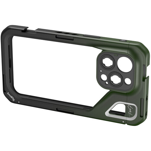 Projetado para o iPhone 15 Pro Max e apresentando a assinatura de Brandon Li, com uma cor e processo de fabricação especiais, o SmallRig x Brandon Li Special Mobile Video Cage é adequado para videografia profissional, transmissão ao vivo, vlogs e muito mais. Vários furos roscados de 1/4"-20 e suportes de sapata fria suportam acessórios, incluindo uma alça lateral, tripé, microfone, luz LED, alça de mão e muito mais. Sua placa traseira de lente é compatível com lentes de montagem M, mas pode ser trocada por uma que suporte lentes Moment T-Series, bem como lentes roscadas de 17 e 37 mm. O design oco da gaiola permite acesso total à porta e aos botões do seu telefone. Os usuários também poderão aproveitar o radar, lentes ultra grande angulares e carregamento sem fio MagSafe. Esta gaiola apresenta um design de trava rápida que a torna mais fácil de montar e desmontar, ao mesmo tempo que a torna mais segura e estável. Graças à construção em metal e às almofadas integradas, seu telefone estará protegido contra vibrações e arranhões, não importa se você está fotografando horizontalmente ou verticalmente.