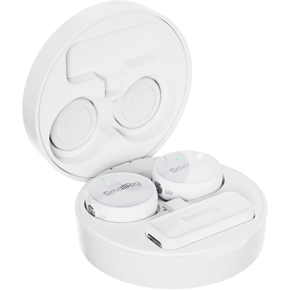 Grave vlogs ou entrevistas com duas pessoas usando o sistema de microfone sem fio SmallRig S 60 para duas pessoas em seu dispositivo Android ou iOS compatível . O sistema inclui dois transmissores de lapela com microfones embutidos e um receptor plug-in de dois canais com conector USB-C, que se conecta ao seu dispositivo móvel compatível. Fixe os transmissores ao seu talento usando os clipes magnéticos traseiros, as almofadas adesivas e a alça de pescoço adesiva.